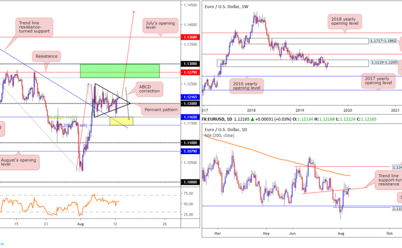 Tuesday 13th August: US dollar index constrained by weekly resistance at 97.72.