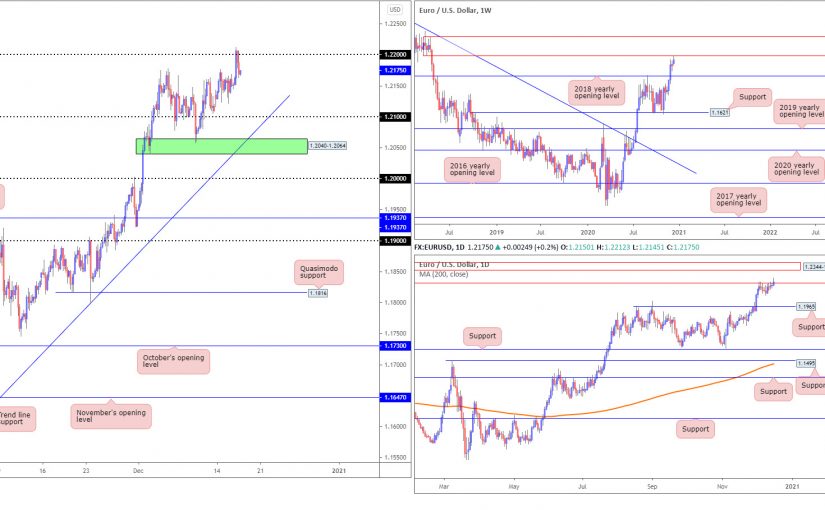 Europe’s shared currency kicked off the final full week of trading in December in reasonably positive territory against a broadly softer USD. With the US dollar index maintaining a presence south of 91.00, EUR/USD went forward and shook hands with daily resistance at 1.2165, a level that made an appearance at the beginning of December.