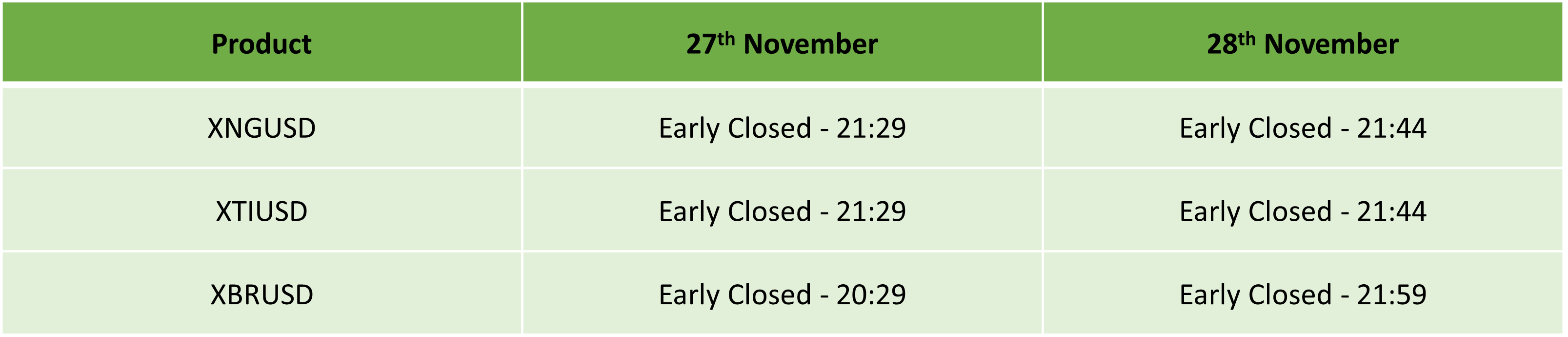Please find our updated Trading schedule and general information related to the US Thanksgiving Day on Thursday, 27 November, 2025 and Friday, 28 November, 2025.