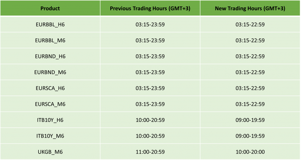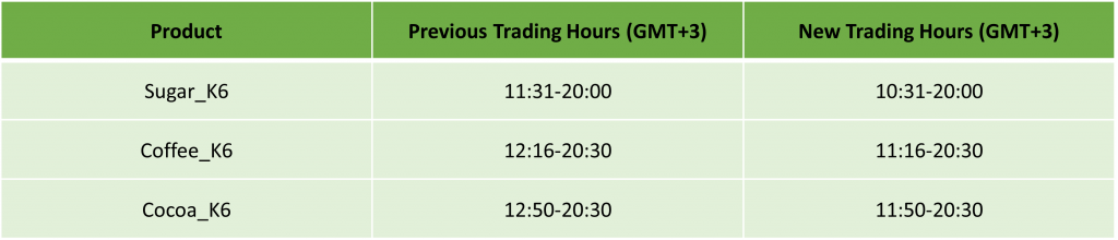 While trading, most products will remain unaffected; however, there will be a change in the trading hours of some products.